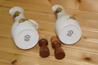 MADE IN ENGLAND "Royal Worcester Evesham Gold" -Oil and Vinegar Cruets & Wood Stoppers, 5 7/8"- MADE IN ENGLAND Good very lightly used condition with no chips, cracks, crazing. E-bayers have their own way to describe their items, this is mine. Good used will have utensil marks and show some wear. Good lightly used has utensil marks, very light wear. Good very lightly used might have a few utensil marks, very light wear. Almost new, means I see no real signs of wear of any kind but won't sell as new. New means I know they are NEW. My pictures are part of my ad. Sometimes the camera catches what my eyes don't. E-bay allows every seller to put up 12 pictures in each ad and I try to show as much of the item as I can. There is also a "ZOOM" that should allow you to enlarge. White spots are my camera flash or the lights. I have been packing breakables and dishes for years! I use fresh bubble wrap and packing peanuts, and as I pack thousands of dishes each year, I do it very well. However I use the postal service and at times they do not understand the word "FRAGILE", or they have seasonal workers. This is why I insure all boxes. If your order does have any damage, you are required to keep the box, all packing materials and the damaged item for any claim. May you always know that God loves You!!