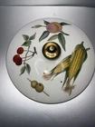 This Royal Worcester Evesham serving bowl is a vintage piece from England, made of high-quality porcelain material. The bowl comes with a lid and is designed with a beautiful gold pattern. The serving bowl is perfect for those who want to add a touch of elegance to their dining experience. The set includes a serving bowl and a serving bowl lid, making it ideal for serving during special occasions or events. The bowl is shaped like a 28 and is perfect for serving soup, salad, or any other dish. The vintage design adds a touch of uniqueness to your collection, making it a must-have for any pottery and glass collector. Great condition No chips or scratches Rare find