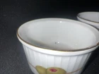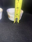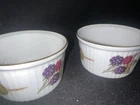 Add some elegance and sophistication to your dinner table with these beautiful Royal Worcester Evesham Gold Rim Ramekins. Made in England in 1961, these vintage porcelain ramekins are adorned with the charming Evesham Gold pattern, featuring delightful illustrations of various fruits. The set includes two ramekins, perfect for serving individual portions of your favorite desserts or side dishes. The ramekins are approximately 3 inches wide and 2 inches tall. They are in good vintage condition see no chips or cracks. There’s minor wear to the gold rim but otherwise in very good condition please look at all the pictures message any questions. Crafted with care and attention to detail, these ramekins boast a stunning gold rim that adds a touch of luxury to your table setting. Whether you're hosting a formal dinner party or enjoying a cozy meal with your family, these ramekins are sure to impress. Get your hands on this original Royal Worcester Evesham set and elevate your dining experience today!