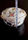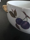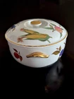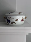 Royal Worcester Evesham Round Casserole Dish with Gold Painted Handles and Lid** **Item Description:** For sale is a stunning Royal Worcester Evesham pattern round casserole dish, complete with gold-painted handles and a matching lid. This casserole dish is an excellent example of Royal Worcester's commitment to elegance and quality, showcasing the timeless appeal of the Evesham design. The dish is crafted from fine white porcelain and is adorned with the signature Evesham fruit and berry motif, accented with rich gold-painted handles and trim on the lid. This casserole dish measures approximately 8 1/2 inches in diameter (without handles) and around 10 inches wide with handles. The height of the dish is approximately 4 inches without the lid and 5 1/2 inches with the lid in place. This casserole dish is in very good vintage condition with no chips or cracks, only minimal wear consistent with age. It is perfect for both display and use, adding a touch of classic elegance to your dining experience. **Product Details:** - **Brand:** Royal Worcester - **Pattern:** Evesham - **Material:** Porcelain - **Color:** White with Fruit & Berry Motif, Gold-Painted Handles and Trim - **Condition:** Very Good Vintage Condition - **Dish Measurements:** - Diameter (without handles): 8 1/2 inches - Diameter (with handles): 10 inches - Height (without lid): 4 inches - Height (with lid): 5 1/2 inches - **Origin:** Made in England, circa 1961 - **Markings:** Royal Worcester Logo on the Bottom of the Dish and Lid **Historical Significance:** **Royal Worcester:** Established in 1751, Royal Worcester is one of the oldest and most respected names in porcelain manufacturing. The company is known for its high-quality bone china and porcelain, often featuring intricate hand-painted designs. Royal Worcester has a rich history of producing elegant tableware that is cherished by collectors worldwide. **Evesham Pattern:** The Evesham pattern, named after the Vale of Evesham in England, was introduced in the 1960s. The design is inspired by the fruit and berry harvests of the region, featuring detailed depictions of these natural elements. The pattern's classic beauty and timeless appeal have made it a favorite among collectors and those who appreciate fine English tableware. **In the Spirit of Saint Francis:** As part of our ongoing commitment to giving back, 10% of the proceeds from this sale will be donated to the Humane Society, helping to support animals in need. **Check Out Our Other Items:** Be sure to visit Saint Francis Gifts on eBay to explore more unique and collectible items. **Thank you for your interest!**