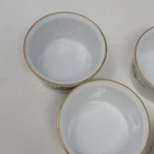 Royal Worcester Ramekins - Evesham Micro - lot of 4 porcelain Ramekins Shape - 48 Size - 00 All look to be in good shape, they have alternating blackberries and olives around the outside with a gold trim around the lip 3.25in wide, 2in tall