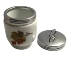This Royal Worcester Egg Coddler is a beautiful piece of porcelain made in England. The design features a colorful pattern called Evesham, with peaches and berries. It is a great addition to any collection or a lovely item to use in the kitchen. The coddler is perfect for cooking eggs and can be used for decorative purposes as well. It is a contemporary original piece that is sure to impress. The brand is Royal Worcester and the model is called Evesham. The material is porcelain and the coddler comes in multi-color. This item is a perfect gift for friends and family who appreciate fine porcelain. See photos for more details on item condition.