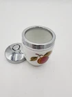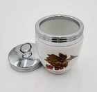 This beautiful Royal Worcester Egg Coddler is a vintage piece from the 1960s, made in England with a glossy finish and an all-over fruit pattern featuring plums, peaches, berries. It is a limited edition, original porcelain piece with an impressed backstamp, and it has been handcrafted using the traditional Art Pottery production style. This egg coddler is perfect for keeping your eggs warm for up to 4 hours and has a 1/2 cup capacity, one compartment, and a round shape. It is dishwasher safe and has decorative features that make it perfect for use as a decorative item in your kitchen.