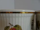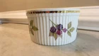 Set of 3 Royal Worcester Evesham Fine Porcelain Soufflé Quiche Baking Dish - Oven to table ware. White background with fruit decorating the side. Ribbed exterior with gold trim. This listing includes the following items - Size 0 - 7 1/2" (19.05 cm) diameter, 4" (10.16 cm) tall & Size 1 - 7" (17.78 cm) diameter, 3 3/4" (9.525 cm) tall & Size 3 - 5 1/2" (13.97 cm) diameter, 3" (7.62 cm) tall. Great condition. The larger dish has some minor wear on the gold band.