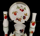 Number of Place Settings:NoneStyle:FormalBrand:Royal WorcesterShape:RoundModel:Royal Worcester … EveshamNumber of Compartments:4Material:PorcelainPlate Diameter:7.125”Set Includes:See DescriptionOriginal/Reproduction:OriginalNumber of Items in Set:Four-PieceFeatures:Many Serving PiecesDepartment:AdultsCountry/Region of Manufacture:United KingdomFinish:GlossyTheme:FINE DININGOccasion:All OccasionsColor:MulticolorPattern:EveshamYear Manufactured:2008Type:Dinner Set
