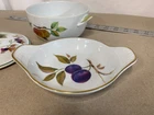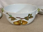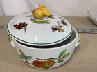 This exquisite 3-piece serving set by Royal Worcester features a beautifully decorated lidded serving bowl and under platter, both adorned with Evesham pattern. The set is made of high-quality ceramic material that goes from freezer to oven to table to microwave and boasts of a stunning blend of multicolors that will add a touch of elegance to any dinner table. Ideal for serving hot or cold dishes, this serving set is perfect for any occasion, from family dinners to formal gatherings. Whether you are a collector of decorative cookware or simply looking for a functional serving set, this Royal Worcester Evesham set is a must-have addition to your collection. Ships from TEXAS! Thank you for considering!