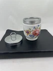 Royal Worcester Pink Rose Egg Coddler is a fine porcelain egg cup made in England. The egg cup features a beautiful pink rose pattern and comes with a lid. The glossy finish adds to its elegance. This original product is perfect for collectors and those who appreciate fine dinnerware and serveware. For Inventory - Sydney Box