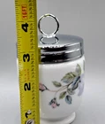 This Royal Worcester egg coddler is a must-have for any collector or lover of fine dinnerware. Made in the United Kingdom, this original piece features a glossy finish and colorful design by June Garland. The coddler is made of porcelain and metal, and comes with a lid for added convenience. Perfect for all occasions, this double egg coddler is a vintage piece that adds a touch of elegance to any kitchen or home. It is a great addition to any collection of egg cups or collectibles, and is sure to impress. Get this original and licensed reproduction piece today!