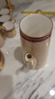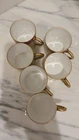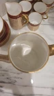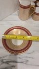 The Royal Worcester Red & Gold Chintz Floral Demitasse Cups, Saucers Coffeepot Set is an 15-piece vintage collection from the 1860s, featuring a delicate floral design on fine bone china. This set includes 6 coffee cups and 6 saucers, as well coffee pot, sugar bowl, creamer Overall good condition with the exception od crazing on 2 cups and coffeepot See photos for details