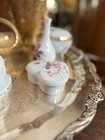 This bone China heart shaped trinket dish is in great condition. No chips or cracks found.
