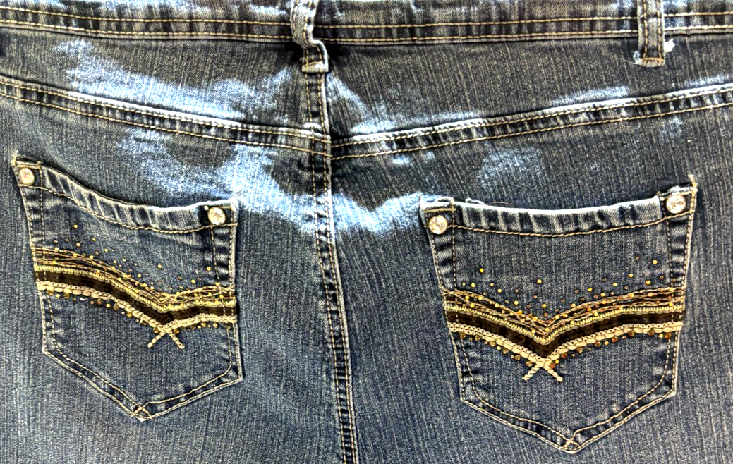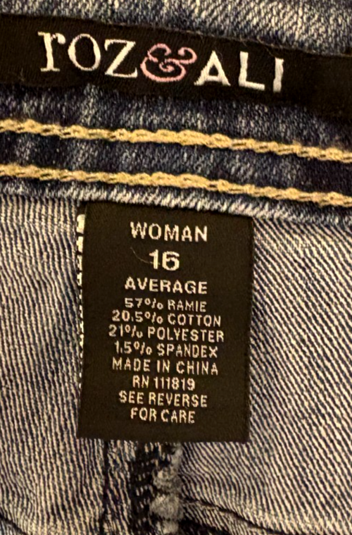 The Roz & Ali Women's Studded Embroidered Blue Denim Stretch Jeans in Size 16 (W36xL27) are a stylish and versatile addition to any woman's wardrobe. These jeans feature a solid pattern with studded and embroidered accents, giving them a unique and trendy look. Made from a blend of Ramie, Cotton, Polyester, and Spandex, these jeans offer a comfortable fit with added stretch for ease of movement. The medium wash and mid-rise design make these jeans a classic choice that can be dressed up or down for any occasion. Perfect for the fashion-forward woman looking for a chic and practical denim option.