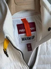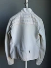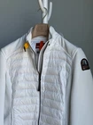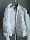 The Parajampers Hybrid Jacket is a stylish and versatile puffer jacket designed for women in size medium. Featuring a polyester outer shell and polyamide lining, it is insulated with down for warmth and breathability. This jacket is perfect for various occasions, from casual outings to workwear, with a full zip closure and zipped pockets for convenience. The white color and solid pattern add a touch of elegance, making it a standout piece for the winter, fall, and spring seasons. Made in Indonesia, this jacket is a rare find in the designer category.