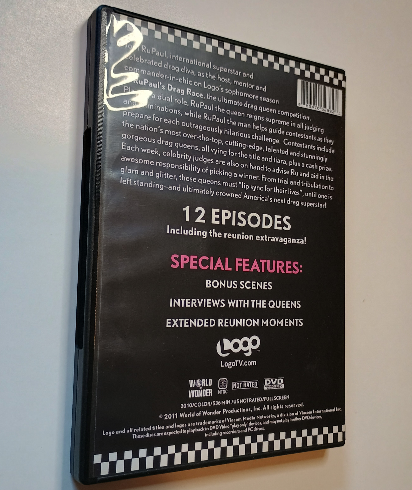 RuPaul's Drag Race Season 2 DVD set. Originally aired on LOGO Network. 2010 Pre-owned. Case in excellent condition. All discs included. Discs show minor scratching but does not affect playback.