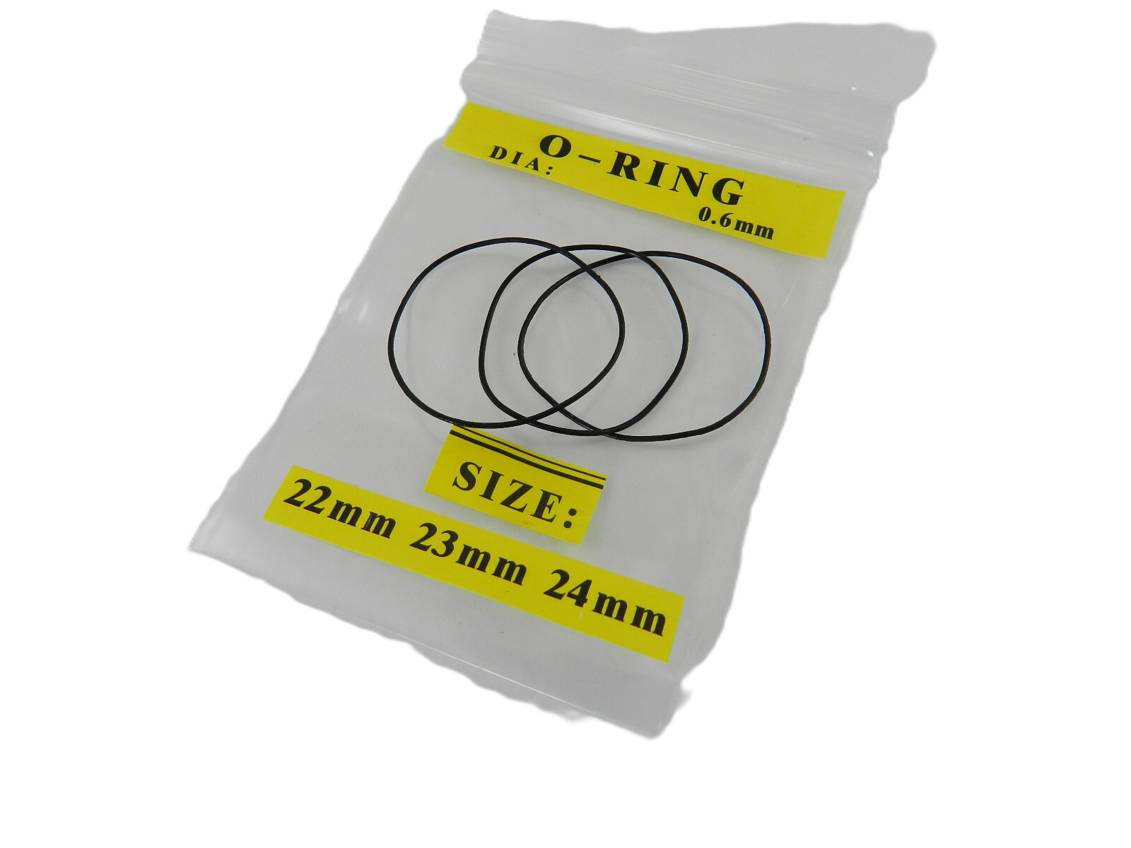 Rubber Watch Case Back O Ring Round Gasket 22mm-23mm-24mm Thick 0.6mm Color: BLACK Thickness: 0.6mm Materials: RUBBER Each packet includes 3 o-rings ( 22mm-23mm-24mm Thick 0.6mm )