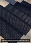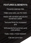 Rubber Stair Treads Non-Slip Outdoor 35”x10” 5-Pack – Anti-Slip Step Mat with PERMANENT SOLUTION FOR SLIPPERY STAIRS: Unlike nonslip grip tape, our rubber stair treads provide a permanent solution that will last the stand of time; can be used both indoors and outside COVER LARGER AREA: Reduce slippery areas and increase safety by covering a larger stair surface with 35 inch wide no-slip rubber stair treads for stairs; can also be cut to fit your exact dimensions PROTECT YOUR LOVED ONES: Elders, children, babies, animals, pets, dogs, puppies, cats MULTI SURFACE COMPATIBILITY: Increases traction and grip on steps and floors made of: hardwood, wood, concrete, marble, tile, vinyl, metal, laminate; has to be installed with heavy duty construction glue (not included) SAFETY ALL ROUND: The rubber stair treads are durable in both harsh winter conditions and hot summer temperatures; Rubber is much better at adapting to different temperatures compared to PVC plastic or anti-slip tape Please measure your stairs to verify sizing (can be cut to fit your needs).SAFETY FIRST: The rubber treads are designed to keep your stairs and surfaces safe all round. The textured surface design provides additional safety with its improved traction. SAFE FOR PETS & BARE FEET: Our rubber treads are not too rough to damage the paws of your pets or bare feet. The gritty surface provides just enough traction to keep you and your loved ones RESISTANT FOR OUTDOOR USE: Tested in numerous conditions, the rubber treads stand the test of time and weather conditions (snow and rain). LOW MAINTENANCE: Once installed, the rubber treads will not give you any additional maintenance tasks aside from removing snow and ice as you usually would.