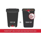 About This Product The convenient and easy-to-use Rubbermaid Step-On Waste Can with Liner Lock is both functional and innovative. It features a Liner Lock, which contains wires that secure the trash bag to the rim of the can, preventing slide-down. Add a clean look to your space with a waste container that hides refuse from view. Highlights Liner lock feature works with any style of tall kitchen trash bags Stainless steel foot pedal allow for hands-free operation Works with any style of tall kitchen trash bags Arms in the base secure bag to rim and prevent bag from slipping into can 3 steps to secure the bag - lift arms up, wrap the bag and press arms down