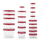 Easily store food, plus minimize kitchen clutter, by using Food Storage Containers with Easy Find Lids. These meal prep containers are easy to organize and help save space in your cabinets, plus, the 3- and 5-cup sizes feature a built-in lid vent for splatter-resistant microwaving, The lids snap to each other and to the bottom of the containers and are bright red, so they're always easy to find. Constructed from durable, BPA-free plastic, these food containers are built to withstand a wide range of temperatures and are dishwasher and freezer safe; the vented containers are fully microwave safe when the vent is opened. And thanks to their clear bases, it's easy to see what's inside. These food storage containers are great for meal prep; they feature Easy Find Lids that snap to bases and same-size lids; 3- and 5-cup containers feature a built-in top vent for splatter-resistant microwaving Lids snap together at bases to reduce clutter BPA free and dishwasher safe; vented food containers are fully microwave-safe with the vent open, while non-vented containers have microwave-safe bases; recommended for reheating only Thick, durable container walls for everyday use Set includes five 0.5-cup, four 1.25-cup, four 2-cup, two 3-cup, three 5-cup, one 5.5-cup, and one 8.5-cup containers with lids; 3-cup and 5-cup containers have vented lids