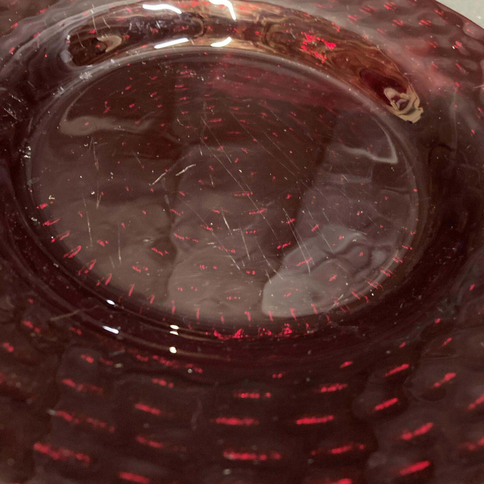 This set of four ruby red glass dessert plates measure 7.75 inches in diameter. The plates are pre-owned and come in good, clean condition with no chips, cracks, or breaks. Please note that there are some light surface scratches on the inside of the plates from previous use. Please see pictures for complete details. If you have any questions or concerns, please do not hesitate to contact us. Check out our other items and message us if interested in more than one listing as combining items could save you money on shipping. RETURNS & REFUNDS Please inspect your item as soon as it arrives. We stand by the quality of the items we sell and will issue a full refund, including shipping charges, on any defective item that is returned. Please note: photos of the item, packaging, serial numbers and/or product identifiers may be required in order to guarantee a full refund. Returns are accepted on non-defective items; however, shipping charges will be withheld from your refund.