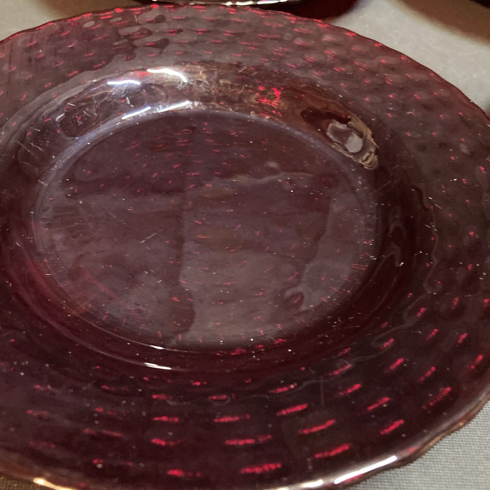 Got these ruby red dessert plates and they’re gorgeous! The color is so rich and elegant, perfect for adding a pop to any table setting. They’re in great condition—just minor scratches you barely notice. Love the vintage charm, and the size is ideal for small treats or appetizers. Super happy with this find!