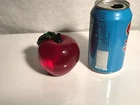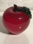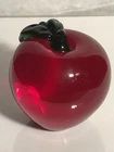 The perfect gift for a favored teacher, this Red Apple Paperweigh with a Green Leaf measures 3 1/4" by 3 1/8". It is believed to have been designed by an artist named Lor Ritz. Excellent condition with no chips, dings, dents or cracks.