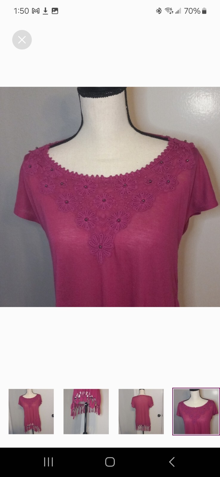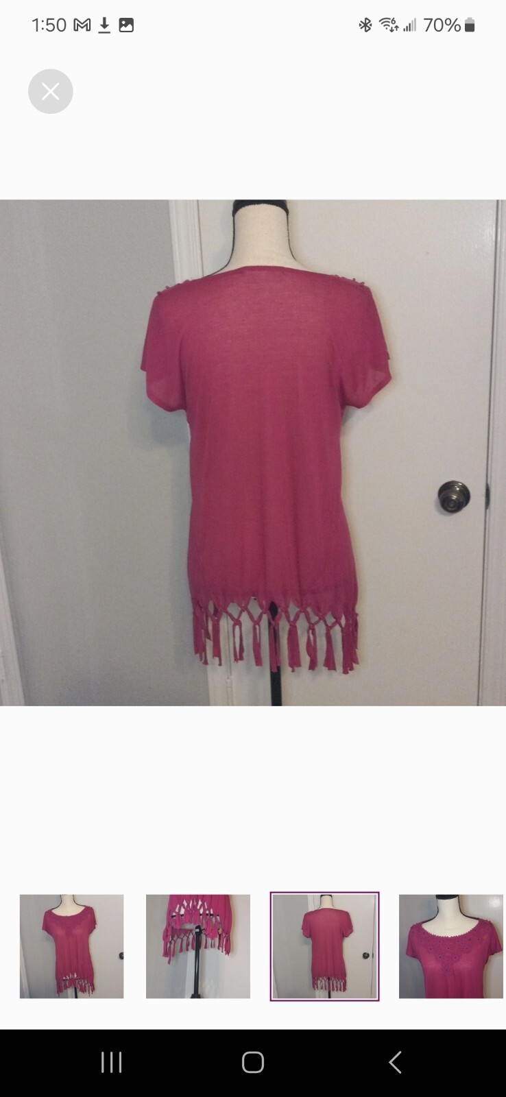 Magenta Size L Thin material Used but in great shape No rips, stains or funky smells
