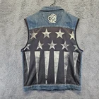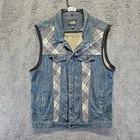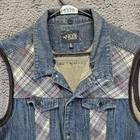 Rude Denim Vest Men Size XL Blue Gray Plaid Collared Button Front