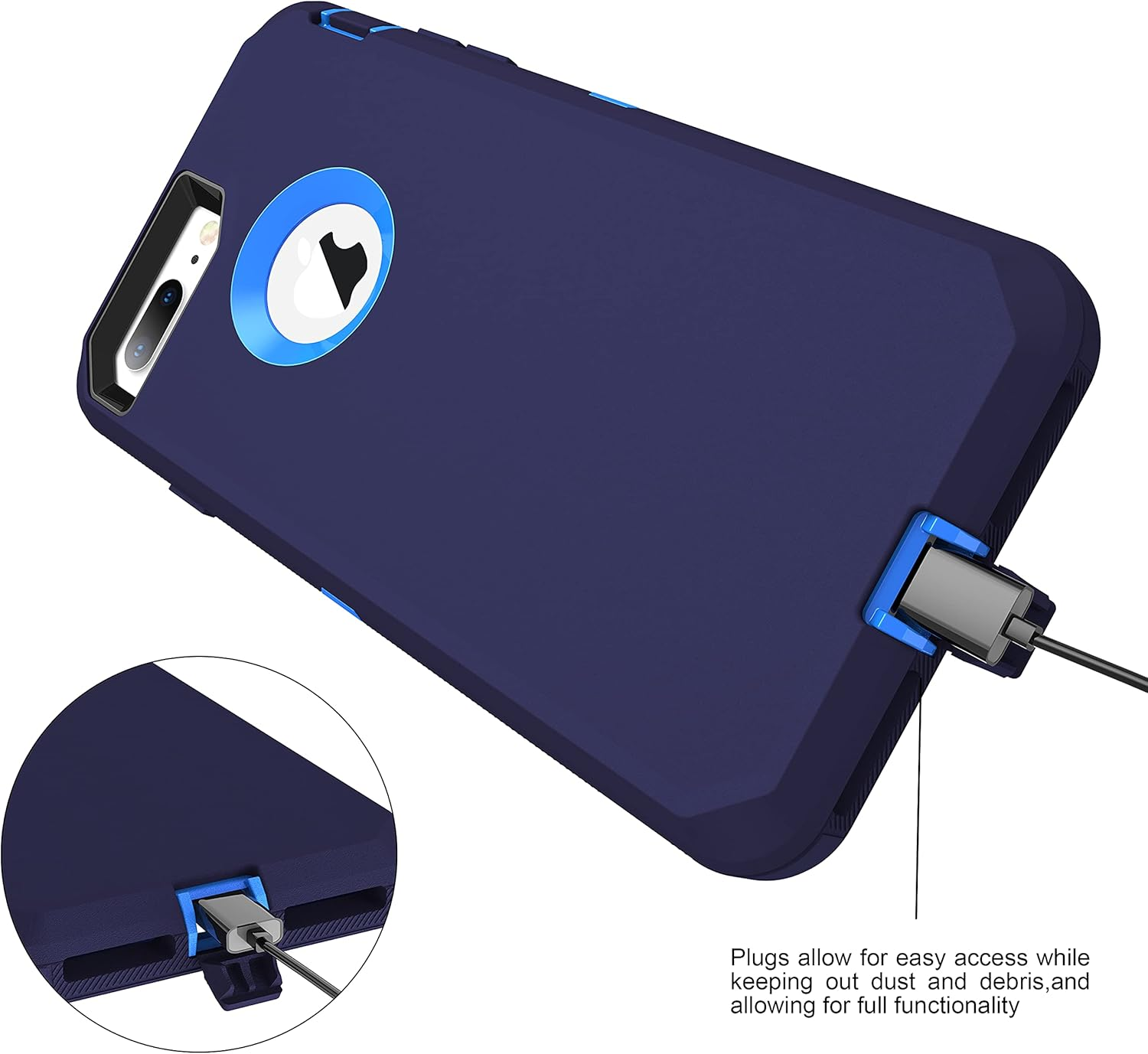 COMPATIBILITY: Compatible with Apple iPhone 7 Plus - iPhone 8 Plus (2017-2018) All version carriers (AT&T, Verizon, Sprint, T-Mobile, International) Durability: Triple-layer defense: inner shell, Rugged outer cover and touch screen protector to combat drops, scratches, bumps and shocks.Unique Detachable Design & 4- Layer Protection: Shockproof ,Dust Protection , Scratch Protection and Drop Protection. Including a touchable Screen Protector, withstands scratches, bumps and shock.(14 foot height drop protection under flat ground ) ACCESSIBILITY: Perfect accurate cutting providing easy access to all functional keys and holes for your device. Easy to install and remove the cover compatible with iPhone 8 Plus/ iPhone 7 Plus PROTECTION: Port covers keep out dust and debris.Synthetic rubber slipcover. Hard plastic inner and soft rubber silicone outer construction absorbs shock bumps and drop.Raised beveled edge keeps your touchscreen safe,accurate port plug allow for easy access while keeping out dust and debris. May not be compatible with 30-pin to Lightning Adapters or non-Apple branded USB to Lightning cables. WORRY-FREE WARRANTY : Backed by MXx 30 day worry-free warranty. Feel free to contact our customer service representatives if you have any questions or concerns Product Description iPhone 7 Plus ,iPhone 8 Plus Heavy Duty Protective Case with Screen Protector [3 layers] Rugged Rubber Shockproof Protection Cover for Apple iPhone 7 Plus,iPhone 8 Plus