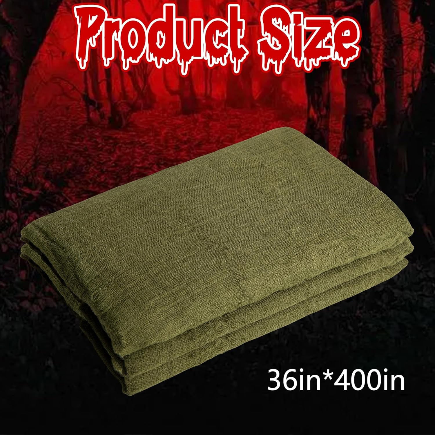 RunNico Large Creepy Cloth Decoration - Spooky Gauze for 600x36 Inch Green Shady colors: You need scary colors like green to match the dim lighting effect,highlight the eerie and make the atmosphere more intense.Place in foyers, shower curtains, porches, window and doors wherever you want and look creepy from a distance. Large size: 400x36 Inch long gauze,which is large enough to satisfy your decorating desires.You can cut it to any length and place these green spooky cloth anywhere in your home for more spooky Halloween vibe. Halloween essentials: Combine creepy fabrics with Halloween props such as fake spiders, bats, skeletons, etc.To show your holiday enthusiasm, and bring your family and friends a scary feeling, fully integrate into the horror party. What you get: The green horror fabric inside the package is made of high-quality lightweight yarn.You can choose to stretch the length to cover other items or tear strips to hang on the lamp, letting the horror fabric drift in the wind. Shipping We offer FREE shipping on all orders! We ship within Three business days of payment, usually sooner. We use a selection of shipping services such as UPS, FedEx, USPS etc. We only ship to the lower 48 states, no APO/FPO addresses or PO Boxes allowed. Local pickups and combined shipping options are not provided at this time. Return You can return a product for up to 30 days from the date you purchased it. Any product you return must be in the same condition you received it and in the original packaging. Please keep the receipt. Customer satisfaction is very important to us. If you have any problem with your order, please contact us and we will do our best to make you satisfied. Contact Us If you have any queries, please contact us via ebay. We usually respond within 24 hours on weekdays. Please visit our eBay store to check out other items for sale! Thank you for shopping at our store.