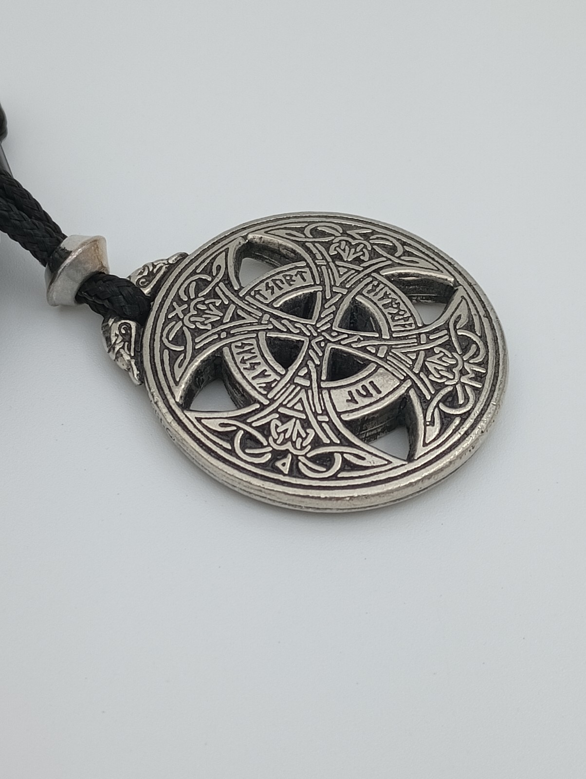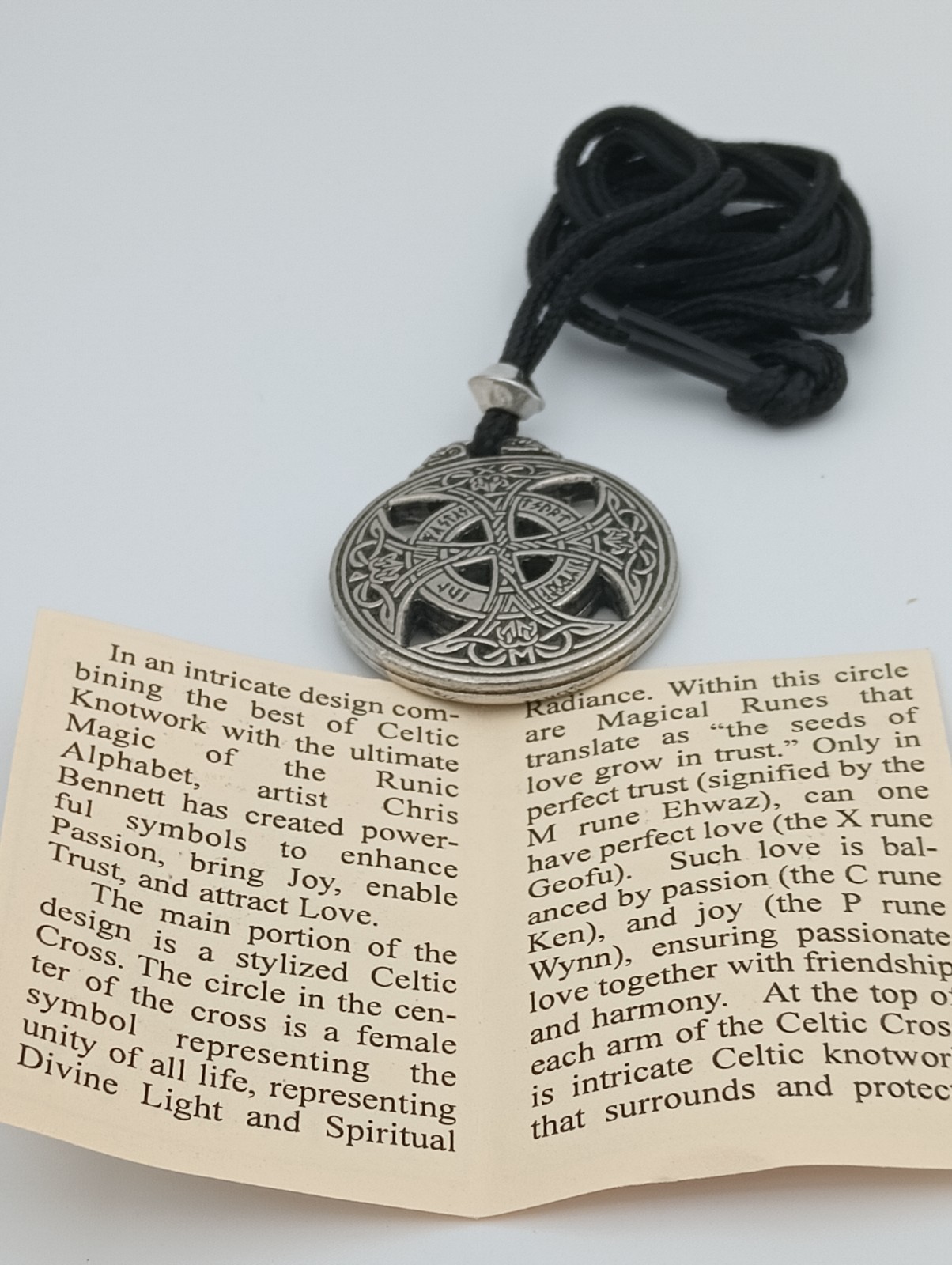 The product is a runic love amulet pendant necklace, featuring a protective amulet design with symbolic rune markings. This pendant necklace is a stylish and unique accessory that can serve as a statement piece or a meaningful talisman. Perfect for those looking for a touch of love and protection in their jewelry collection, this necklace combines style and symbolism in one captivating design. This piece is Superbly hand-crafted in the highest quality lead-free Pewter available. A unique finishing process is used resulting in one of the most beautiful lines of jewelry you can find This Beautiful Pendant is brand new, detailed on both sides and comes with a 36" black cord with accent bead. Thank You for viewing!