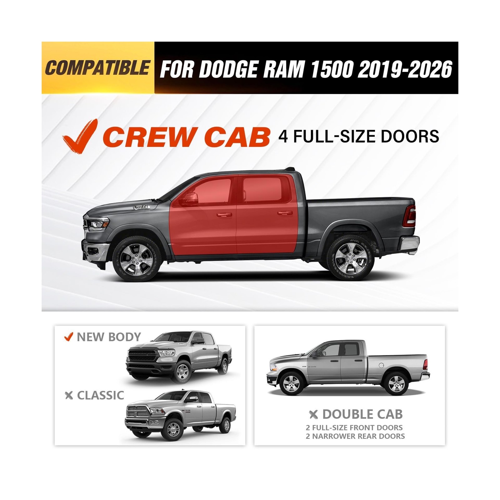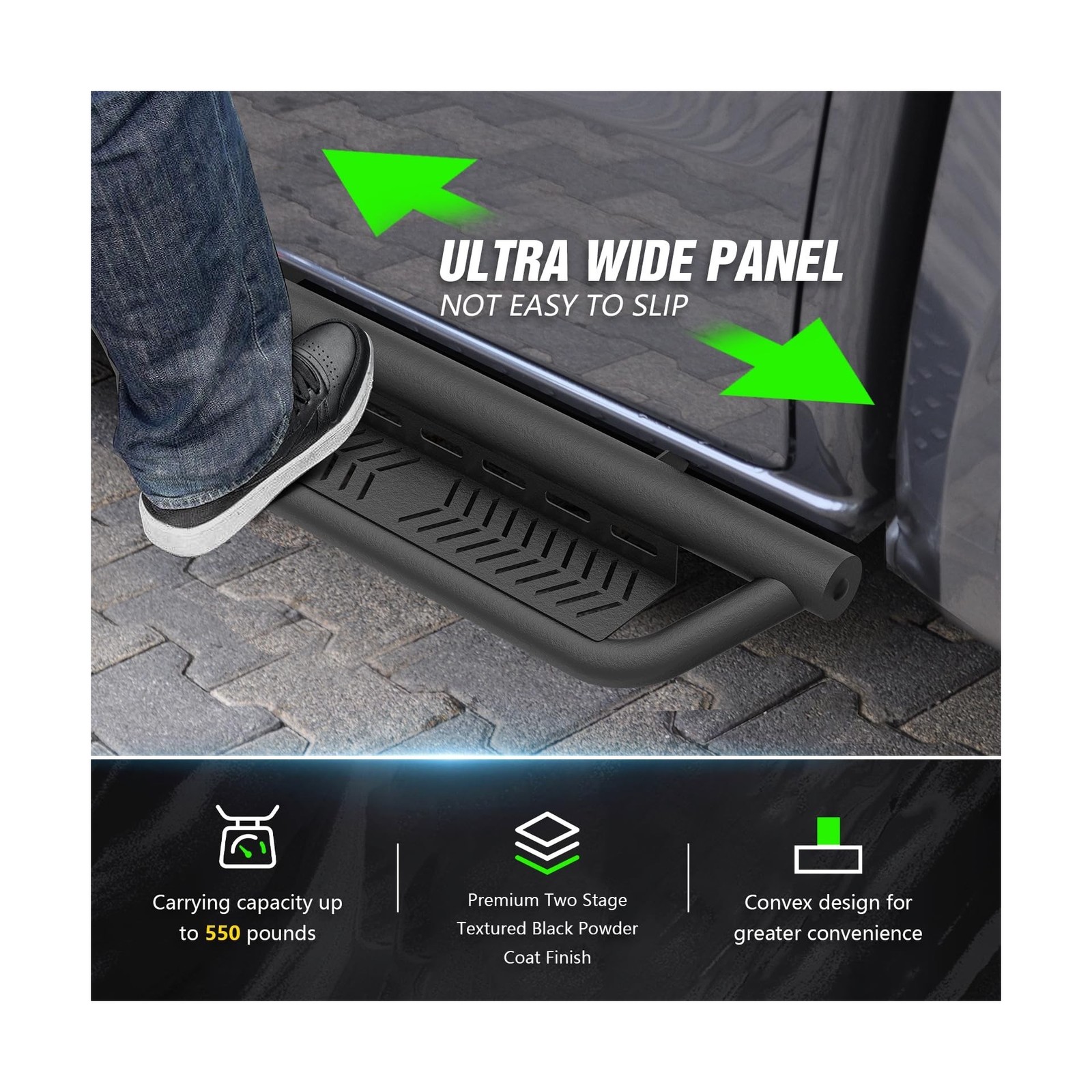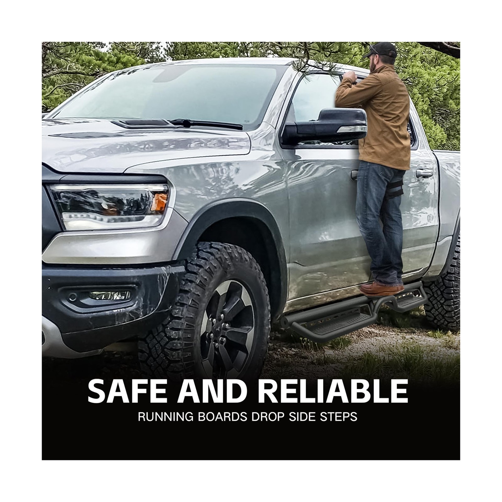Running Boards Side Steps Compatible with 2019-2026 Dodge Ram 1500 Crew Cab New Body Design, Bolt-on Nerf Bar Step Rail Bars, Heavy-Duty Steel Two Stairs Design (Black, Star Logo) Description Features: Compatibility: Two Stairs Design Drop Running Boards are compatible with 2019 2020 2021 2022 2023 2024 2025 2026 Dodge Ram 1500 Crew Cab New Body Design (4 Full-Size Doors). If you are not sure about your model, please check the cab dimensions picture. Functional Design:1 The side steps feature a dual - layer layout, offering greater convenience for vehicles equipped with lift kits and oversized tires. It also facilitates easy access to the vehicle's roof.2 The 6 - inch drop - down step pads provide excellent accessibility for pickup trucks with lift kits and oversized tires, while maintaining sufficient ground clearance. Durability: The high - quality black powder coating offers superior rust and corrosion resistance. Made of 2 - millimeter - thick heavy - duty carbon steel, each side can support up to 550 pounds. Precision laser - cutting and stamping technologies create a non - slip step surface and enhance traction. Easy Installation: Simple bolt - on installation requires no drilling or cutting. The precisely aligned mounting holes allow for installation in approximately 20 minutes. The package includes 2 side bars, a set of brackets, installation instructions, and all necessary hardware. No additional accessories are needed. Worry - Free Service: Before placing an order, please ensure the accuracy of your vehicle model or check the cab pictures in the list. If you have any questions, feel free to contact us directly. We offer a 2 - year warranty for your peace of mind! Product Details: Color: Two Stair Design Brand: EYOUHZ Material: Carbon Steel Exterior Finish: Powder Coated Vehicle Service Type: Compatible with 2019-2026 Dodge Ram 1500 Crew Cab New Body Running Boards Weight Limit: 550 Pounds Automotive Fit Type: Vehicle Specific Fit Manufacturer: EYOUHZ Color: Two Stair Design Brand: EYOUHZ Material: Carbon Steel Exterior Finish: Powder Coated Vehicle Service Type: Compatible with 2019-2026 Dodge Ram 1500 Crew Cab New Body Running Boards Weight Limit: 550 Pounds Automotive Fit Type: Vehicle Specific Fit Manufacturer: EYOUHZ Model: Compatible with 2019-2026 Dodge Ram 1500 Crew Cab New Body Running Boards Item model number: Dodge Ram 1500 Crew Cab New Body Manufacturer Part Number: E-Running-7009-FBM Date First Available: September 24, 2025 Delivery We Do Not Ship Outside of the Continental US. Return Policy All items qualify for returns within 30 days of receipt. Seller is responsible for return shipping on any item that is not damaged. Feedback We take our reputation seriously, we buy and sell online, so we understand the value of trust. If you are unsatisfied with your order, please contact us and we will work with you to resolve it to your satisfaction.