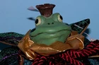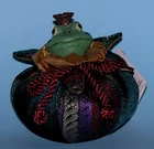 Russ Berrie offers from Kathleen Kelly’s Critter Factory, bean bag fun. Here we have Frog Prince . Item #5492 from the A Royal Winterfest Collection. This regal frog is a true prince. His resin face is fantastic. He's kind of wistful and sad. His face is wonderful. His round body is a variety of lush fabrics. Look close at the details. Any frog lover will want this! if you can part with him! A little smaller than some of the other KKelly characters, at 4.25 in tall. These funny resin creatures are attached to soft filled bodies with beans (actually plastic pellets) in the bottom. They cover a multitude of occasions and activities. They are designed to sit upright. Approximately 5+ in. tall depending on how you arrange the character to lean or flop. The bean bottom shifts to balance the sitter. The bottoms are apx. 4-5 in across. The attention to detail is so good! The faces are goofy and guaranteed to bring a smile to the collector or gift receiver. Check all of the selections in our other listings. You’re bound to find one or more that will get you laughing. They were originally shipped in bulk and do not come in individual gift boxes. Artist, K Kelly, name is etched in neck. Been in smoke free storage. Never had a home and wants one with you. Price includes shipping in Continental USA... Please be aware that International shipping may incur customs fees over and above your payment to us. E-mail your questions on product or shipping before purchasing. Damaged items must be reported to carrier and returned. Our business, A Little Bit of Christmas, is located in Roswell, GA USA. We sell all occasion gifts and collectibles with emphasis on Christmas year round. We have been happily serving customers since 1995.