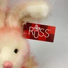 Russ Berrie Ruffles Frosted Cotton Candy Pink Bunny Rabbit Plush Stuffed Animal Measures approx. 12" from tip of ears to back paws - feet. Machine washable.