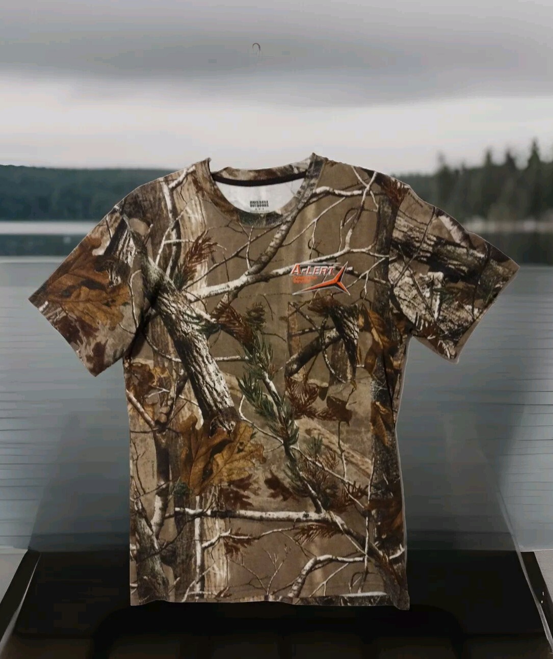 This Russell Outdoors T-Shirt is perfect for anyone who loves the great outdoors. The shirt is made from high-quality materials and features a camouflage design that will blend in with your surroundings. The shirt is available in size M and has short sleeves, making it perfect for warmer weather. The shirt also features the Alert Construction Services logo, adding a touch of style to your outfit. Whether you're hiking in the mountains or fishing in the river, this shirt is sure to become a staple in your wardrobe.