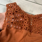 HM Top Womens Rust Brown Crochet Neck Sz Small Sleeveless Knit Shirt Boho Hippie made of soft and smooth Viscose. Item is Preowned but in good condition with some signs of wear. Some armpit discoloration may come out in the wash No holes. See pictures for details and measurements. Ships out fast! Ships daily from U.S. l bundle shipping with other items from my store upon request. eBay.com/str/nettsnook