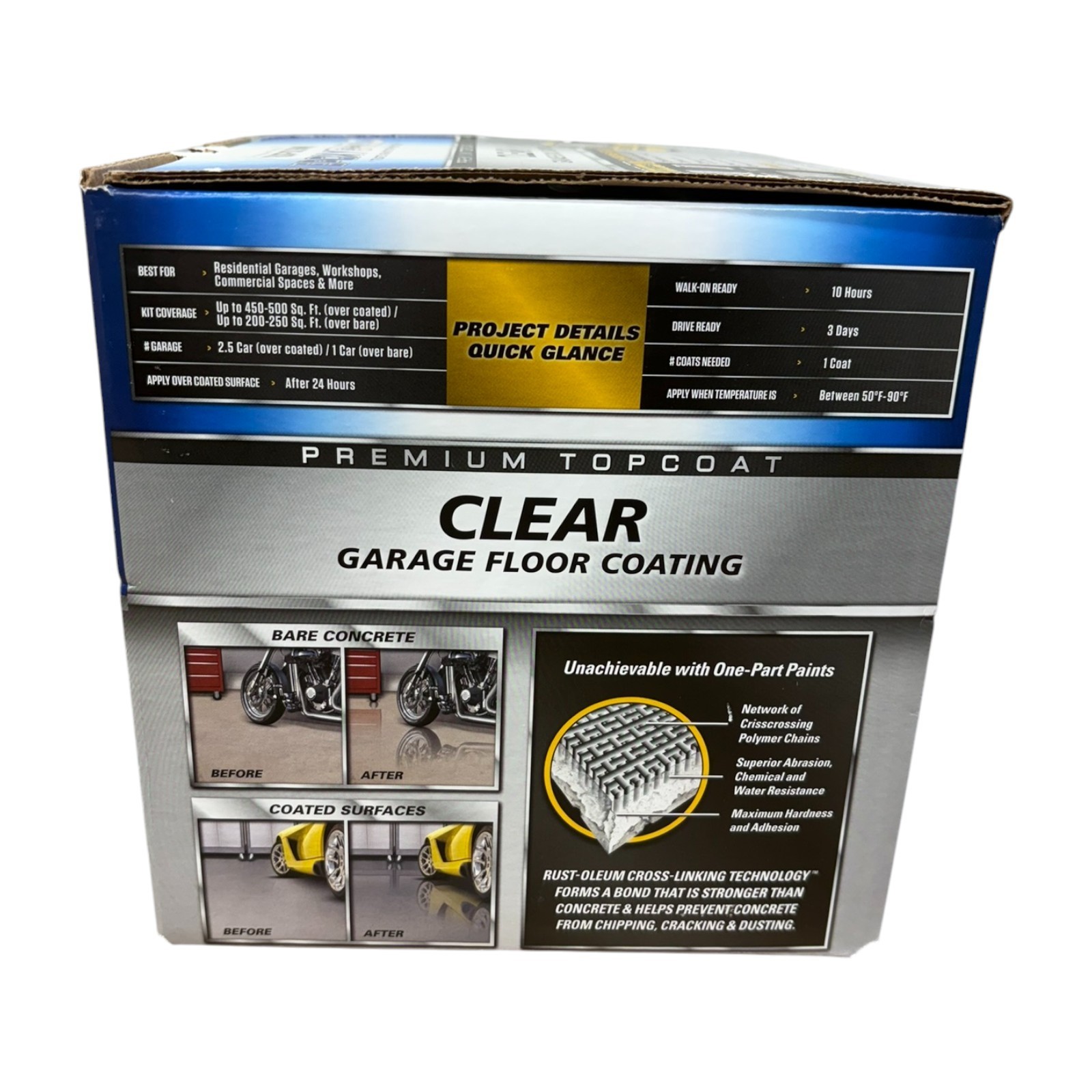 Brand New Fast Free Shipping Provides a high-gloss, protective finish for coated and bare concrete surfaces Ideal for providing an ultra high gloss finish use on coated or uncoated interior concrete surfaces like garages, basements and more Specially formulated two component, water-based floor coating provides resistance to wear, chemicals, stains, foot and vehicle traffic Ready for foot traffic in 24 hours, vehicle ready in 4 days and covers up to 250 sq ft over bare concrete or 500 sq ft coated concrete Long lasting high gloss finish resists cracking and peeling for a show room quality floor with no hot tire pick up Strongly adheres to concrete surfaces to provide exceptional durability 100% Solids Formula, Low-VOC, low odor formula make it an excellent choice for indoor applications Kit contains: two-part burst pouch, anti-skid additive, stir stick and complete instructions For optimal results, thoroughly read instructions prior to application