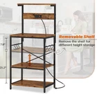 This kitchen shelf rack is a game-changer! The rustic design adds charm while the adjustable shelves and hooks keep everything organized. Love the built-in power outlets—no more messy cords for my coffee maker and toaster. Sturdy, spacious, and super convenient—perfect for small kitchens!
