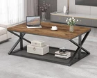Rustic Brown Farmhouse Coffee Table with Wood Metal Storage and Rectangle Design