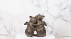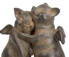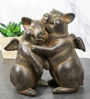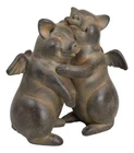 • This angel winged pig couple dancing sculpture is made of polyresin, painted and polished individually. • This angel winged pig couple dancing sculpture measures 5.5" High, 5.5" Wide and 3.25" Deep. It weighs about 1 pound. • Elevate your decor with a touch of whimsy and charm through our Rustic Bronzed Winged Pig Couple Dancing Figurine. This delightful piece combines the unexpected with the rustic, featuring a bronzed pair of winged pigs engaged in a lively dance. The carefully crafted details, from the textured wings to the charming dance poses, add a touch of elegance to the whimsical theme. Perfect for those who appreciate a blend of humor and sophistication in their decor. • Props in photos are not included with the item