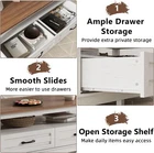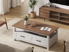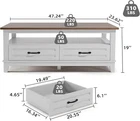 Product Description Practical Coffee Table Ample Storage: At 23.62"D x 47.24" W x 19"H, featuring a large open display shelf and 2 drawers. Sturdy and Durable: Features 6 support legs for stability, 2 metal pipes are inside the support structure under the tabletop Load Bearing: 220 pounds for tabletop, 50 for open shelf, 20 for each drawer Versatle Use Farmhouse Design: It has a walnut color with wood grain patterns on the surface , which provides a rustic yet elegance to your home Easy Assembly: With step-by-step illustrated instructions and necessary accessories to help you finish the whole installation effortlessly Package Quantity Product parts, installation tools and instructions are all in one package. Package Weight About 86 Pounds Product Weight About 84 Pounds Load Capacity Total: 310 pounds. 220 for tabletop, 50 for open shelf, and 20 for each drawer