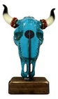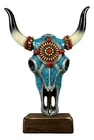• This Bull Cow Skull With Turquoise Aztec Sun Design Desktop Sculpture is 13.25" tall, 8.5" long and 3.5" deep approximately. It weighs about 1.5 pounds. • This Bull Cow Skull With Turquoise Aztec Sun Design Desktop Sculpture is made of designer composite resin, hand painted and polished individually. Color Tone may vary slightly from photos. • Looking just like its real life counterpart, this faux steer cow skull features intricate tooled jointed mosaic design in turquoise color with tasteful aztec geometric design on its temple and horn bases. This Native Tribal Cow Skull is great as a gift to any taxidermy collector, or a great compliment to an avid hunter/huntress. Goes perfectly with any southwestern or western decor themes. • Props in photos are not included with the item. Ebros Rustic Western Aztec Mosaic Turquoise Cow Steer Bull Skull Desktop Sculpture Video will open in a new window Using the mobile app? Copy this link into your browser: