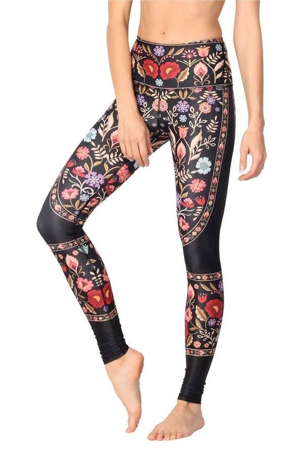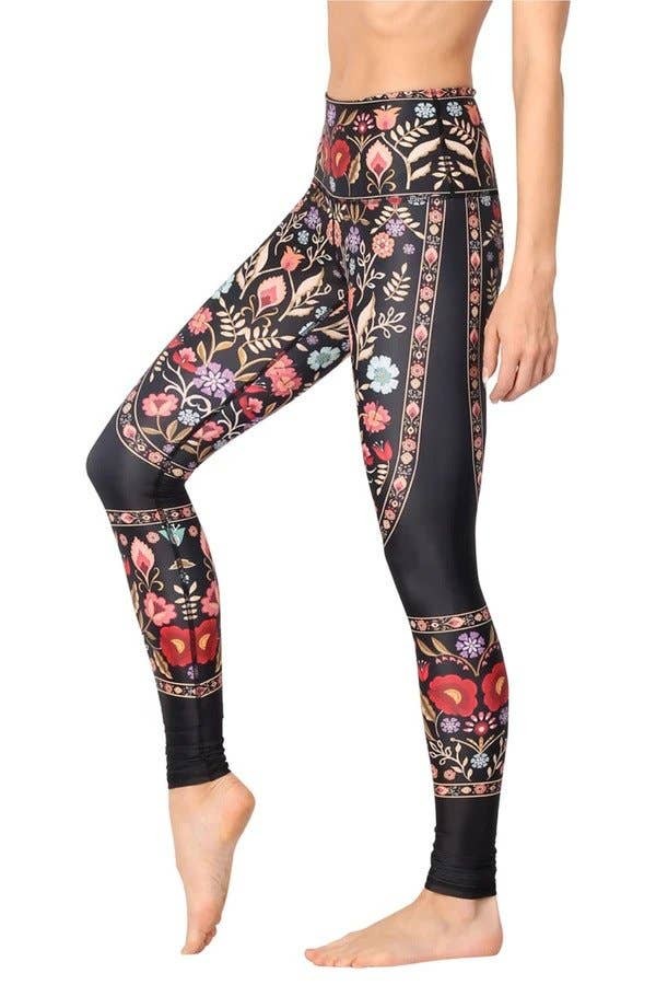These are such great looking leggings. They are perfect for yoga and bar class. So many colors in the print that you could use pretty much any top with them. They are so comfortable and I love them.