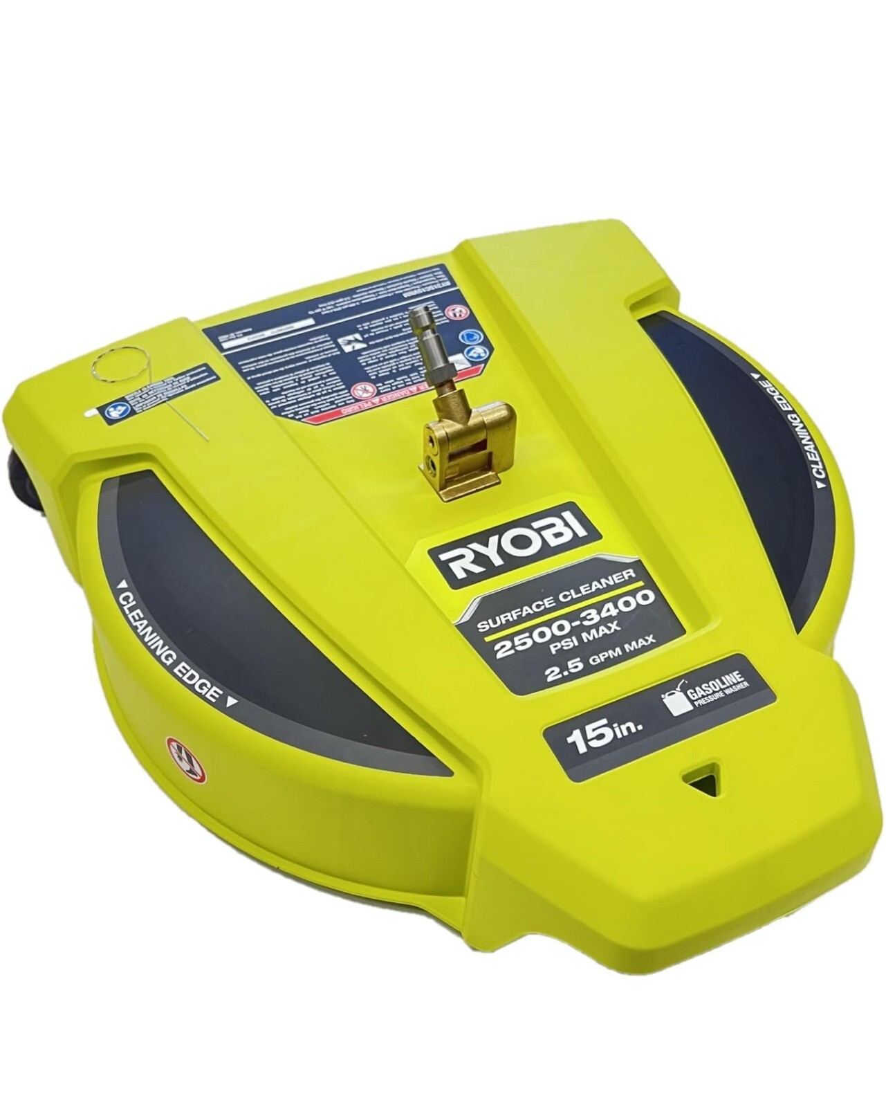 RYOBI 15 in. Surface Cleaner – Open Box for Inspection Only – Quality Guaranteed! Product Overview: The RYOBI 15 in. Surface Cleaner is the perfect tool for tackling tough cleaning jobs on hard surfaces like driveways, patios, and sidewalks. This powerful accessory works with gas pressure washers rated up to 3400 PSI and 2.5 GPM, delivering professional-grade results in a fraction of the time. Designed with convenience in mind, it features rotating high-pressure jets for a streak-free, wide cleaning path and three caster wheels for effortless maneuvering. The quick-connect system allows you to easily attach it to a 1/4 in. wand and switch between tasks seamlessly. Key Features: Superior Cleaning Performance: Cleans up to 5X faster than a standard nozzle. Rotating Jets: Ensures a wide, streak-free cleaning path. Easy Maneuvering: Equipped with 3 caster wheels for smooth movement. Quick Attachment: 1/4 in. quick-connect compatibility for easy setup. Universal Fit: Works with most gas pressure washer brands (2500–3400 PSI, 2.5 GPM). Durable Design: Built to handle tough outdoor cleaning tasks. Item Condition: Condition: Open box for inspection only. The item is like new, fully functional, and includes all original components. Packaging: May show minor signs of handling. Why Choose This Product? Time-Saving: Clean large areas quickly and efficiently. Versatile Compatibility: Fits most gas pressure washers on the market. User-Friendly Design: Smoothly transitions from one job to the next with easy-to-use features. Included in the Package: RYOBI 15 in. Surface Cleaner Original packaging Shipping & Returns: Ships fast and securely within [insert your shipping timeframe]. Hassle-free returns accepted within [insert return period] for your peace of mind. Buy with Confidence: Our items are inspected and quality-checked to ensure your satisfaction. Take advantage of this amazing deal and elevate your cleaning game with the RYOBI 15 in. Surface Cleaner!