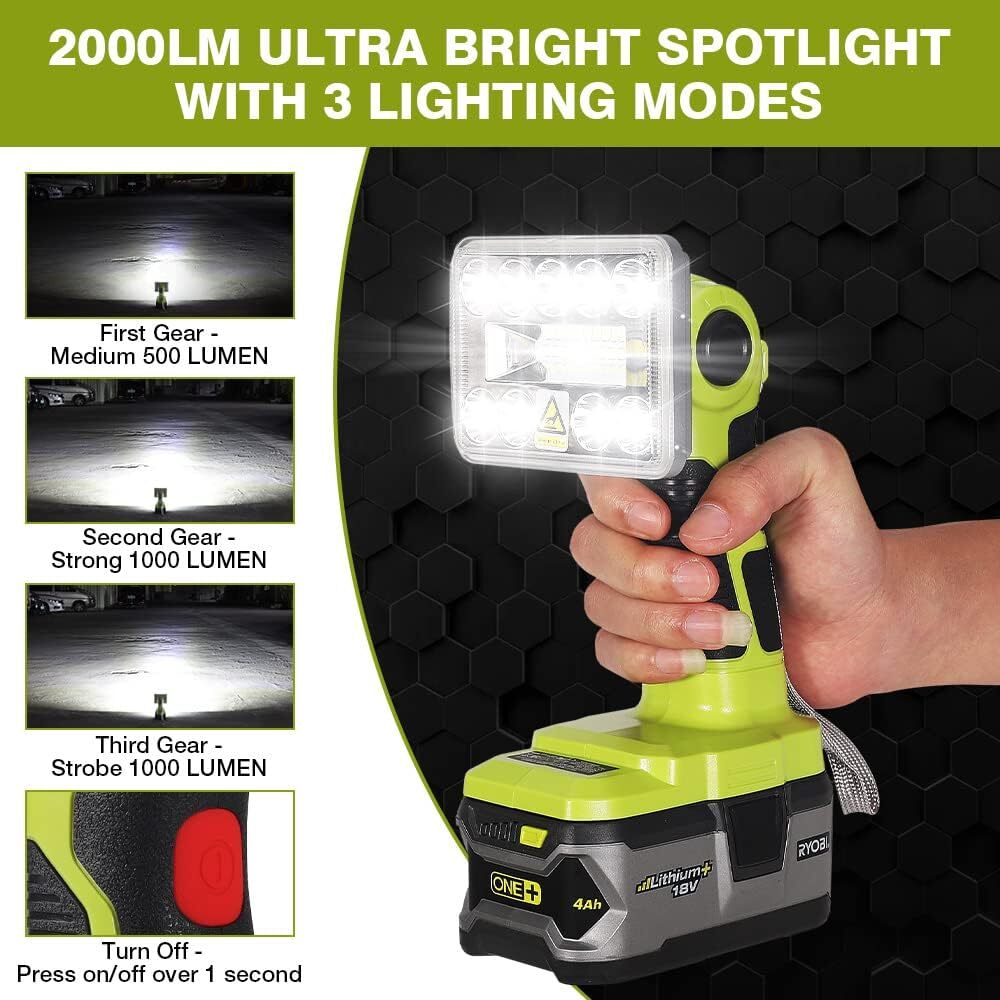 $ 7.691000LM LED Work light Flashlight For RYOBI 18V Spotlight Cordless Emergency Lamp