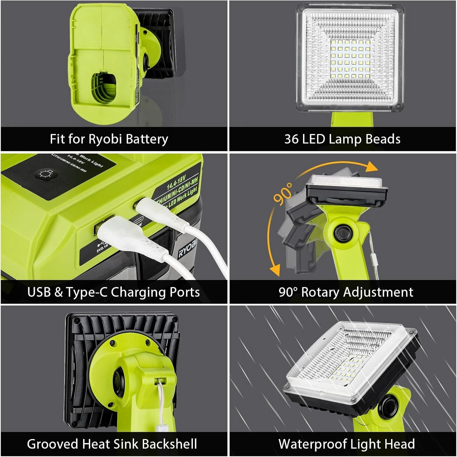 Cordless LED Work Light for Ryobi 18V Battery, 25W LED Floodlight with USB-A&USB-C 2.1A Fast Charging Ports for Jobsite, Car Repairing, Camping, Emergency Cordless LED Work Light for Ryobi 18V Li-Ion Battery Handheld Jobsite Light 24W LED Work Light for Ryobi Ship within 24 hours, fast delivery Ship from US local warehouse 100% Professional technical inspection before delivery Ship with traceable tracking number 1500LM Cordless Light for Ryobi ONE+ 18V Li-ion Ni-Cad Ni-Mh Battery, Portable LED Spotlight with USB & TYPE-C Port, 25W LED Work Light Use for Emergencies, Camping, Outdoor, Indoor(Battery Not Included) Features: 【Replacement for Ryobi light】 Our cordless light for Ryobi can perfectly replaces Ryobi 18V light P717 P705 P795. 100% compatible with all Ryobi 18V ONE+ battery RB18L40 P100 P101 P102 P103 P104 P105 P106 P107 P108 and Ryobi 12V 14.4V Ni-Cad Ni-Mh Battery.(Battery Not Included) 【1500LM SPOTLIGHT&FLOODLIGHT DESIGN】 The lamp holder of our Ryobi flashlight adopts 36 Floodlight Wicks, which is unique design. 36 Floodlight wicks provide a larger lighting range. 【3 BRIGHTNESS MODES LIGHT】 Our Ryobi work light is equipped with 3 brightness modes: LOW-750LM, HIGH-1500LM and FLASHING-1500LM. Press the switch button once for LOW-750LM, twice for HIGH-1500LM, third time for FLASHING. Long press to turn off. 【PORTABLE LIGHT INDOOR OUTDOOR USE】 The size of our LED spotlight for Ryobi is 7.4" x 3.8" x 4.1" Inch, it's portable, cordless and can be use indoor outdoor. Indoor use for emergency lighting, garage, backyard, reading. Outdoor use for hiking, walking dog, camping, wilderness expedition, driving away beasts etc. So bring this Ryobi spotlight to explore the beauty of life. 【EXCELLENT MATERIAL】 Our Ryobi 18V light is made of PC Fireproof plastic and metal. These materials have been tested and determined to be safe. So our Ryobi cordless tool has excellent safety and durability. CE FCC RoHS certification. Worry-free shopping. 24/7 customer service will be provide you. Any questions about this Ryobi tools, please contact us, we will solve it within 12 hours. 【USB & TYPE-C PORT】 5V/2.1A USB and 18W TYPE-C port can charge your phone, fan and electronic devices. WHAT YOU GET: 1 * LED Work Light 18V(Battery Not Included) Product Description Payment Shipping Policy Returns & Warranty About us Contact us Payment *All payments must be prepaid. *We only accept payment via Paypal. Please kindly check if you can do the payment via PayPal before placing an order. Shipping Policy *We are not responsible for undeliverable address. We reserve the right to charge the shipping fee again for returned items due to wrong address. *Items are generally shipped out the next business day after your payment has been cleared (Sat. & Sun. excluded.) *Orders from the United States will all be shipped out via UPS/USPS. The shipment usually takes 3-5 business days( Saturday and Sunday excluded), if you need the item urgently, please contact us for detail before purchase. *Local pick up is not available. *NO International Shipping, including Canada. Returns & Warranty *This product has a 5-year warranty. *Our warranty does not extended to any products that are physically damaged or that are not under normal operating conditions as a result of misuse or improper installation on the buyer/user's part. *For all returned products, buyers MUST contact us for the returning address. *In all cases, buyers pay shipping fees at their own cost to return products for exchange or refund. We will be responsible for the postage of replacements. Refund will be made upon receipt of the returned item. About us *We focus on designing and manufacturing varieties of Power Tool batteries with high quality and competitive price.We will do our best to serve you! Contact us *We have always been trying our best to provide the best service and reliable products for every customer. Please contact us via eBay message or email to resolve the issue before leaving negative feedback. *Any problems pls contact us at any time before leaving a negative/neutral feedback. Many thanks to you.