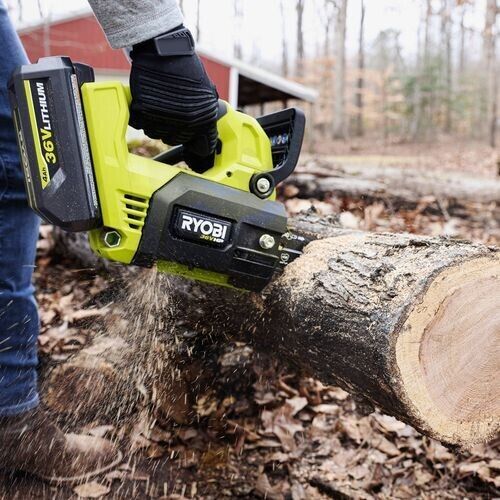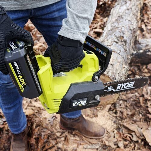 Ryobi 36V HP™ Brushless 12” (30cm) Top Handle Chainsaw – Tool Only R36XCHS10 Features 22.5m/s chain speed Compact and lightweight top handle design Inertia-activated chain brake Automatic/adjustable oiling system Hanging ring for harness connection and storage Use the 36V HP Brushless 12” (30cm) Top Handle Chainsaw to cut up logs, cut down small trees or prune large trees. Its powerful HP brushless motor generates a petrol-equivalent performance without the need for annoying pull cords, chokes or petrol top-ups. With a 12” bar and maximum 22.5m/s chain speed, this Unit makes fast cuts into wood up to 250mm in diameter. It’s also a great tool to pack for camping trips and 4WD-ing. The compact and lightweight top handle design helps reduce user fatigue and makes it easier to cut branches at challenging angles. The inertia-activated chain brake protects users from kickback scenarios. Use the hanging ring for easy connection to a harness or storage. The adjustable and automatic oiling system disperses chain and bar oil to keep the bar lubricated and operating smoothly. The amount of chain and bar oil used can be adjusted for the type of wood being cut. The 36V Chainsaw is part of RYOBI‘s HP series of tools that utilise advanced technologies, like brushless motors that deliver higher performance, extended battery runtimes and longer motor life. These tools are ideal for tough operating conditions and larger gardens with mature plants. They also have superior ergonomics for a premium user experience. Dimensions Width Height Length Product 570mm 210mm 225mm Package 215mm 320mm 230mm Weight Easy To Carry Total Weight 3.5kg Specifications Model Name Ryobi 36V HP™ Brushless 12” (30cm) Top Handle Chainsaw – Tool Only R36XCHS10 Model Number R36XCHS10 Corded (Yes/No) No Chain size (mm) 305 Charger Included (Yes/No) No Cordless (Yes/No) Yes Battery Voltage (volts) 36 Batteries Included (Yes/No) No Chain Specification 12” (305mm), 45 Drive Links, 3/8LP, 0.043” Gauge Listing and template services provided by inkFrog