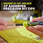 Ryobi 38 Piece Precision Screwdriver Set, Includes Magnetic Pick-up Bit, Case The RYOBI 38 PC. Precision Screwdriver Set is designed for a wide variety of precise applications from electronics repair to adjusting eye glasses. The rotating cap and comfort grip handle provide increased control, while the anti-roll design keeps the screwdriver where you left it. The included magnetic pick-up bit helps retrieve small parts with ease and the storage case with built in sorting tray lid helps keep you organized while working. The 38 PC. Precision Screwdriver Set includes: (1) Screwdriver Handle, (5) Phillips Bits (000, 00, 0, 1, 2), (4) Slotted Bits (1.0, 2.0, 3.0, 4.0), (9) Star Bits (T3, T4, T5, T6, T7 ,T8, T9, T10. T15 (T5-T15 Security Bits)), (8) Hex Bits (0.7, 0.9, 1.3, 1.5, 2.0, 2.5, 3.0, 4.0mm), (2) Nut Drivers (2.5mm, 5.0mm), (2) Pentalobe Bits (#2, #5), (4) Tri-Point Bit (Y000, Y00, Y0, Y1), 1) AWL/Scribe Bit, (1) Standoff Bit, and (1) Case. 37 assorted precision bit tips for a wide range of applications Rotating cap for increased control Comfort grip handle Anti-roll design keeps the screwdriver where you left it Included magnetic pick-up bit helps retrieve small parts with ease Stay organized with included storage case and built in sorting tray for bits and screws while in-use Includes: A96302 (1) Screwdriver Handle, (5) Phillips Bits (000, 00, 0, 1, 2), (4) Slotted Bits (1.0, 2.0, 3.0, 4.0), (9) Star Bits (T3, T4, T5, T6, T7 ,T8, T9, T10. T15 (T5-T15 Security Bits)), (8) Hex Bits (0.7, 0.9, 1.3, 1.5, 2.0, 2.5, 3.0, 4.0mm), (2) Nut Drivers (2.5mm, 5.0mm), (2) Pentalobe Bits (#2, #5), (4) Tri-Point Bit (Y000, Y00, Y0, Y1), 1) AWL/Scribe Bit, (1) Standoff Bit, and (1) Case