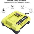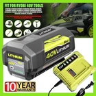 Product Features ?Battery Feature?Replacement OEM# OP4060A: Battery Type: Lithium-ion | Voltage: 40V | Capacity: 6000mAh | Removable & Rechargeable | High capacity battery for extended run time; ?Compatible With?This battery works with all RYOBI 40-Volt lithium-ion tools (string trimmer, lawn mower) and chargers, including RY40200 RY40403 RY40204 RY40530 RY40460 RY40180 RY40250, and OP403A OP401 ZROP401 OP400A RY40440; ?Replace Model?for Ryobi 40V battery part#: OP4050A OP4015 OP4026 OP40201 OP40261 OP4030 OP40301 OP4040 OP40401 OP4050 OP40501 OP40601; ?LED Indicator?On-board Battery Life Indicator: 4 LED lights on the battery that indicate the remaining power for user convenience and over-molded edges for impact protection; ?Safe & Reliable?The lithium-ion battery is CE, FCC, ROHS certified, built-in over-charge, over-discharge, over-voltage, over-current, and over-heating protections, safety for the battery and your RYOBI 40-Volt collection. Product Specifications For battery 1.Battery Type: Lithium-ion 2.Battery Voltage: 40 Volt 3.Battery Capacity: 4000/6000mAh 4.Battery Wattage: 240 Watts 5.Battery Color: Black and Green For charger 1.Product Type: Replacement Charger 2.Input: 90V-130V 50/60Hz 72W 3.Output: 40V 1.8A (MAX) 4.Charge Time: 3 hours or less 5.Operating Temperature: 32?~104? 6.Size: 6.7*5.9*2.4 inch Compatible With Fit for Ryobi Battery Part Number:(Please use t he ?Ctrl+F? to search your model) OP4050A, OP4015, OP4026, OP40201, OP40261, OP4030, OP40301, OP4040, OP40401, OP4050, OP40501, OP40601 Fit for Ryobi Tools Model:(Doesn't fit RY40002, RY40503, RY40408) RY40180, RY40200, RY40022, RY40201A, RY40202, RY40204, RY40400, R40402, RY40402A, RY40403, RY40403A, RY40411, RY40502A, RY40511, RY40601A, RY40LM30, RY40190, RY40430, RY40620, RY40460, RY40250, RY40770, RY40850, RY40610A, RY40210B, RY40240, RY40440. for Ryobi 40 volt battery Fit for Ryobi Charger Model: OP400, OP400A, OP401, OP403, OP403A, OP404A, OP406A, ZROP401 Package Include Battery / Charger For Ryobi 40V (Depen on your Choice) Warranty 90 Days Free Return and 10 Year Warranty, 24 Hours friendly customer service