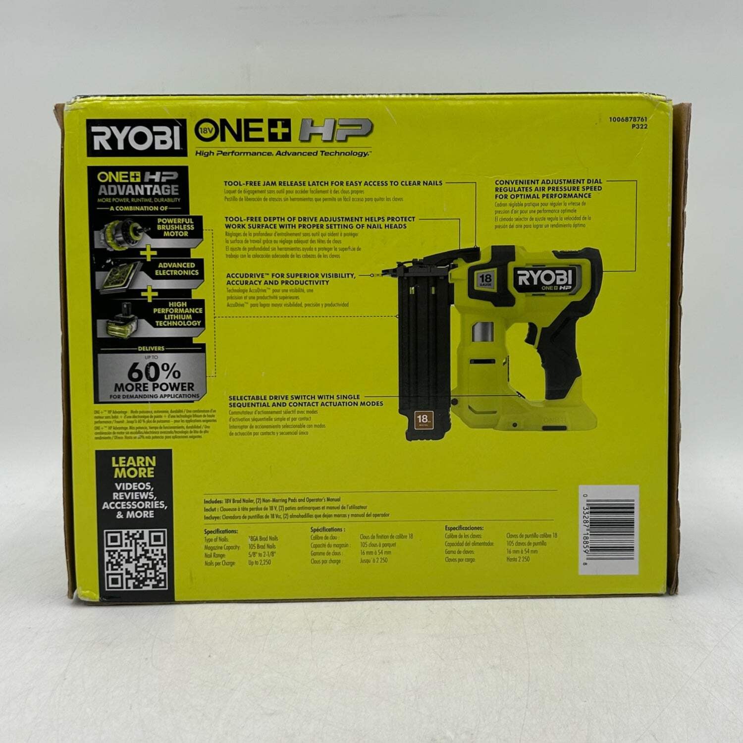 Ryobi One+ HP 18V Brushless Cordless Brad Nailer Tool Only P322