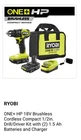 Ryobi One+ HP 18V Brushless Cordless Compact 1/2" Drill/Driver Kit PSBDD02K2. Condition is New. Shipped with USPS Priority Mail.