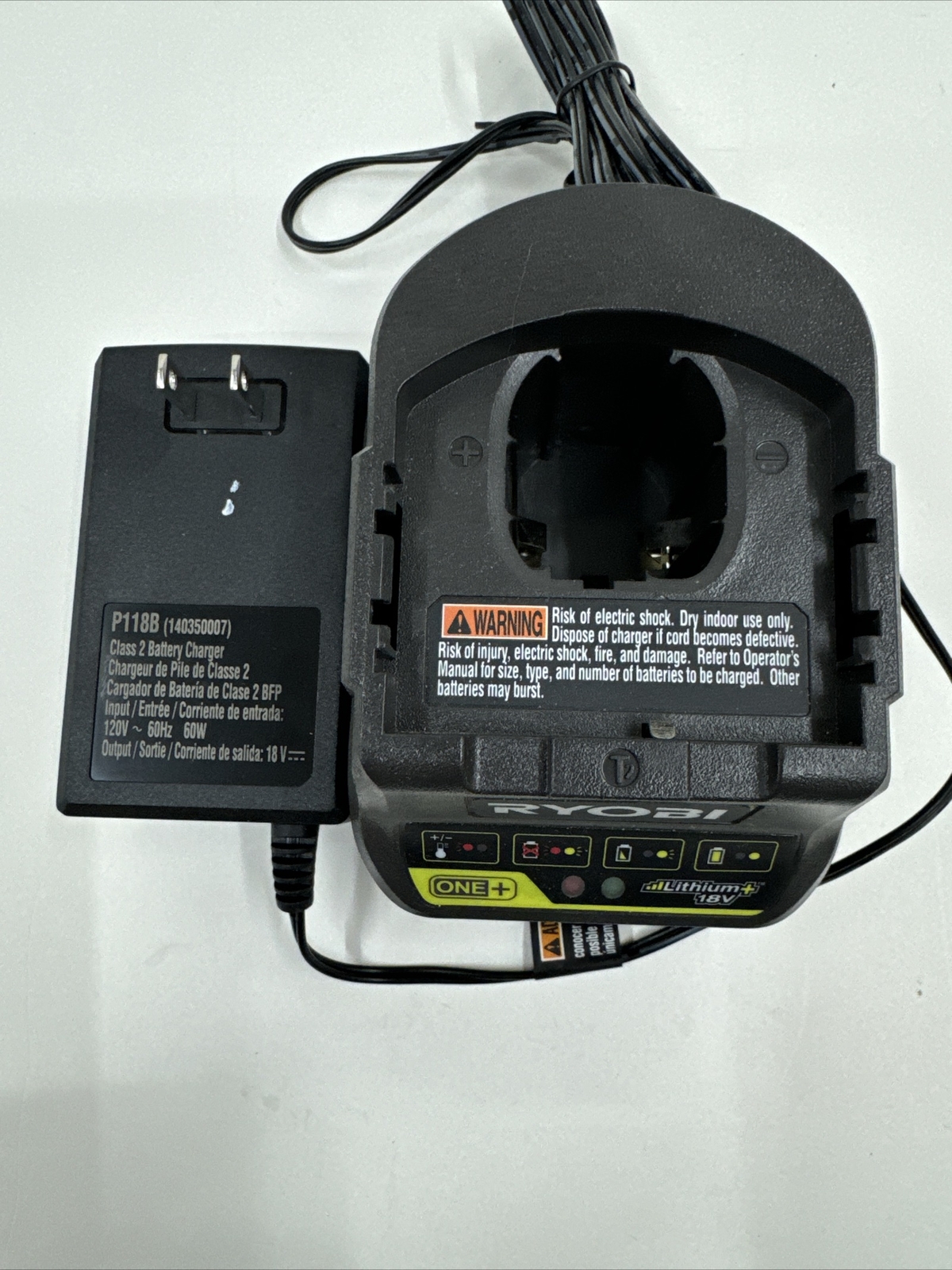 This high-quality Ryobi P118B 18V ONE+ Lithium-Ion Battery Charger is the perfect addition to your power tool collection. With its advanced Lithium-Ion technology and 18 V battery voltage, you can rest assured that your tools will always be fully charged and ready to go. This battery charger is designed for use with Ryobi tools and is made in Vietnam. It is a black color and has a model number of P118B. The charger is sold as a body only and does not include a battery. It is suitable for use with a variety of Ryobi tools and is an essential accessory for any DIY enthusiast or professional tradesperson.